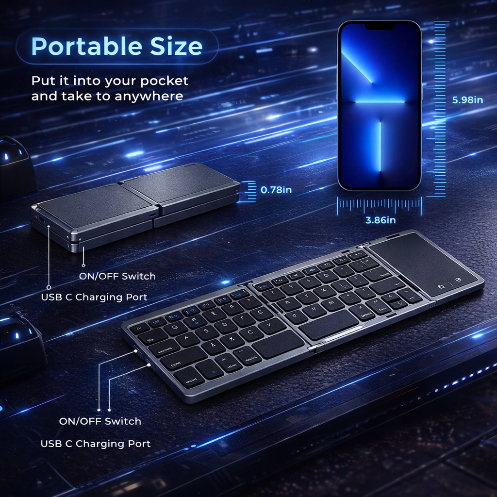 This keyboard completely changed how I work on the road. It folds small, sets up fast, and feels solid once opened. Perfect for hotel desks and tight spaces.